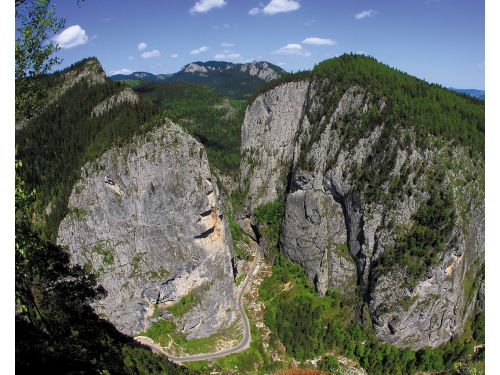 A Békás-szoros Hargita megyében, Székelyföldön található. A Keleti-Kárpátok kijáratának is nevezik. A szoros három fő része sokatmondó: ez a Pokol kapuja, a Pokol tornáca és a Pokol torka. A mély szurdokvölgy földtani és természetvédelmi rezervátum, mely a Hagymás-hegység központi részében, a Békás-patak völgye mentén terül el 10 km hosszúságban. A Békás-szoros egy tektonikusan előrejelzett völgy mentén alakult ki a vízfolyások eróziójának eredményeként. A bevágódást a terület folyamatos emelkedése is kísérte és segítette. A szorost 1971-ben védetté nyilvánították, jelenleg a Békás-szoros - Nagyhagymás Nemzeti Park része. A Békás-szorost közrefogó hegycsúcsok: Kis-Cohárd (1344 m), Csíki-bükk (1264 m), Oltár-kő (1154 m), Mária-kő (1125 m). Az Oltár-kő nyugati lábánál a Lapos-kanyonon keresztülfolyva a Lapos-patak ömlik a Békás-patakba. A szurdok alsó részén, a Kis-Békás-patak mentén található a Kis-Békás-szoros. A vidék és egyben az ország egyik legjelentősebb sziklamászó terepe a Gyilkos-tó - Békás-szoros sziklaparadicsom. A sziklafalakat középidei mészkő alkotja, mely az erózió és a tektonikai mozgások hatására kialakult repedések, üregek következtében tökéletes terepévé vált a sziklamászásnak.